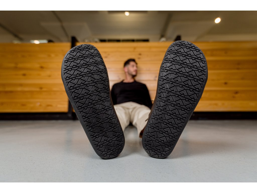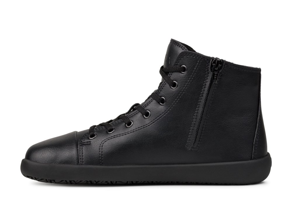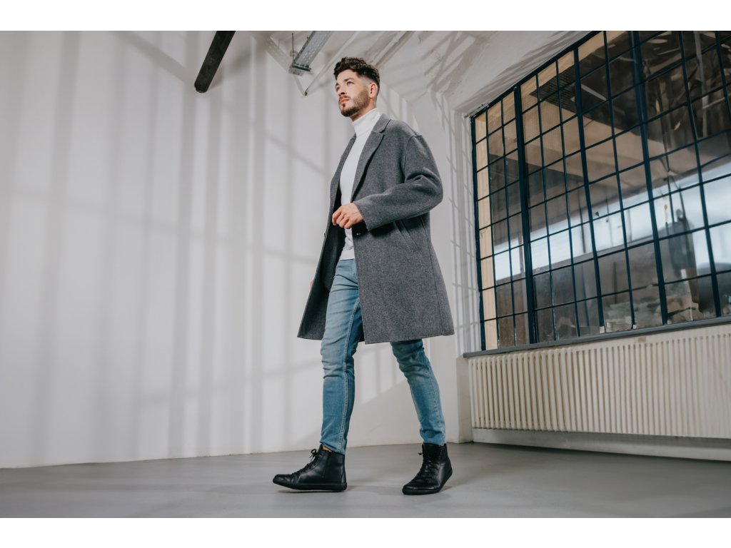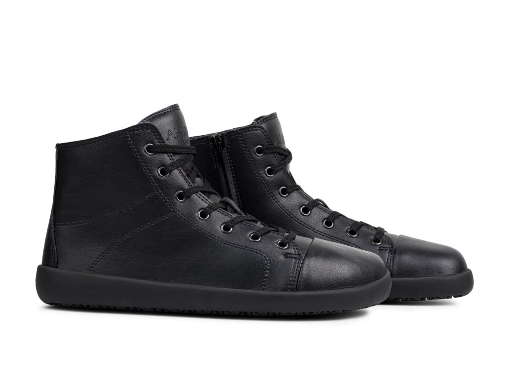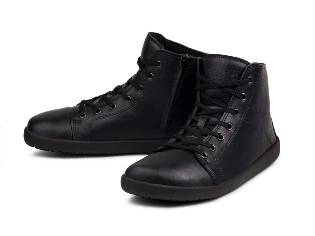 Stylové unisex zimní barefoot kotníkové tenisky na zip z černé veganské eko kůže s membránou.