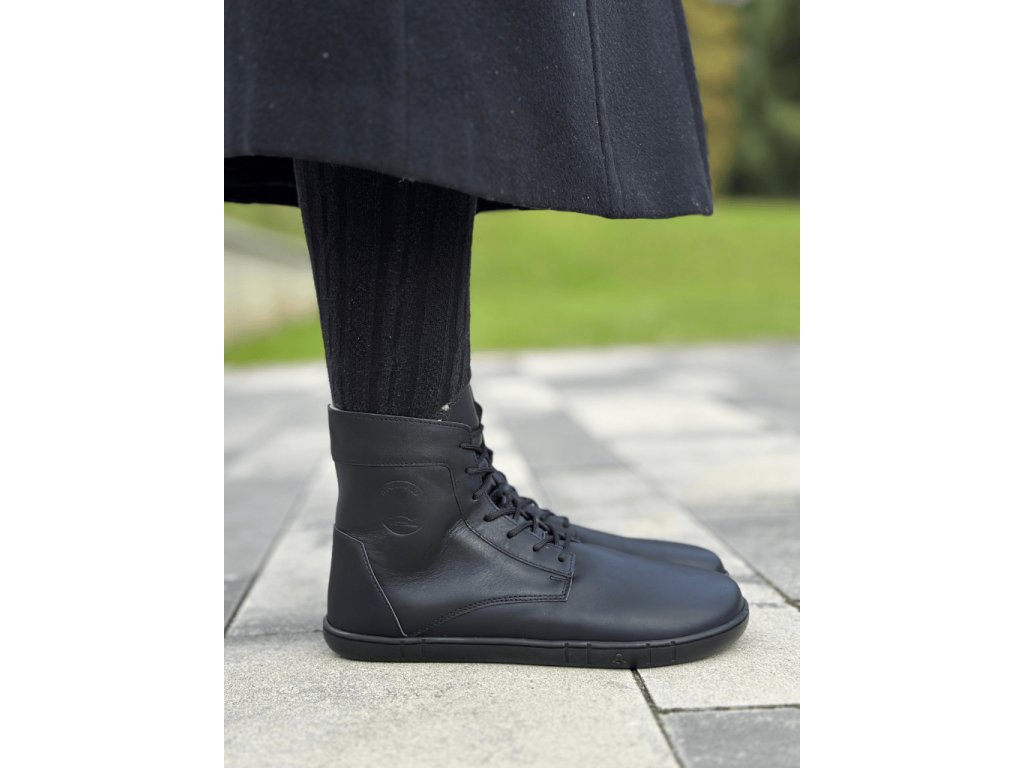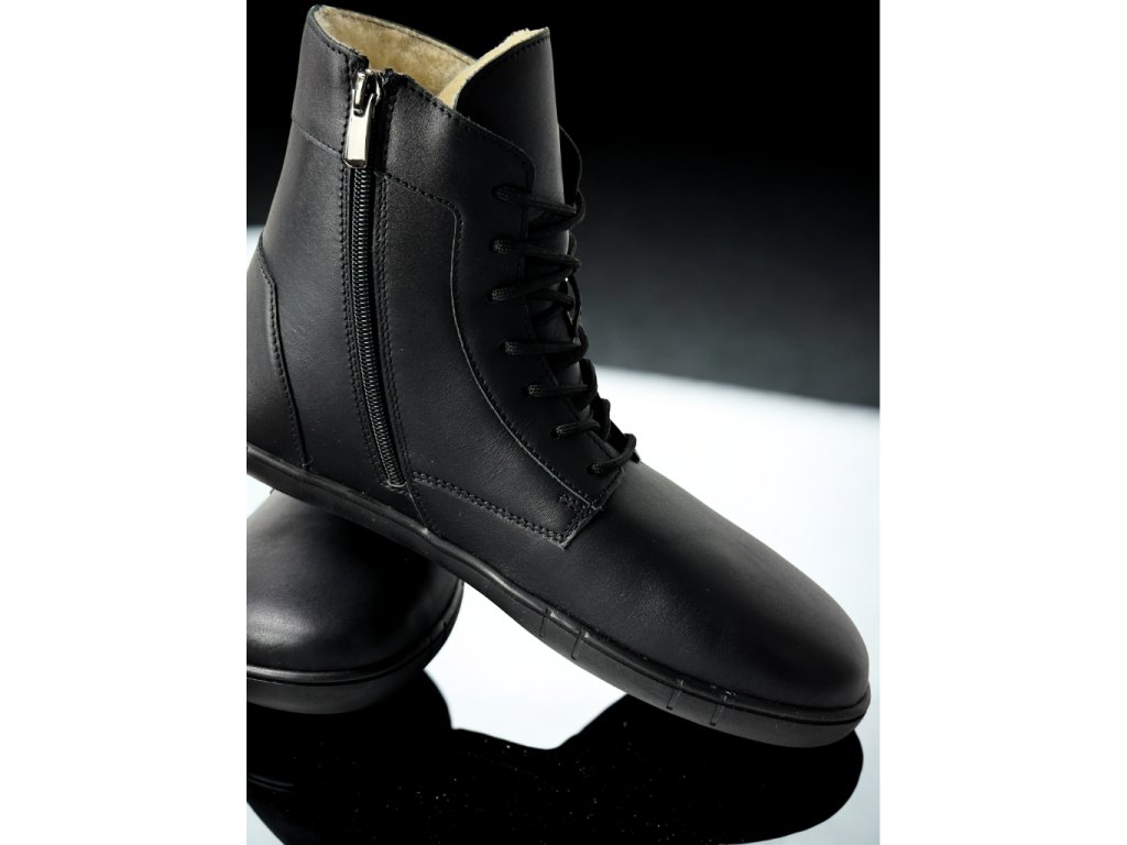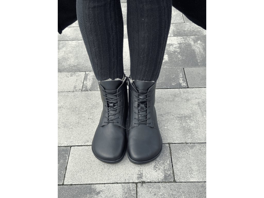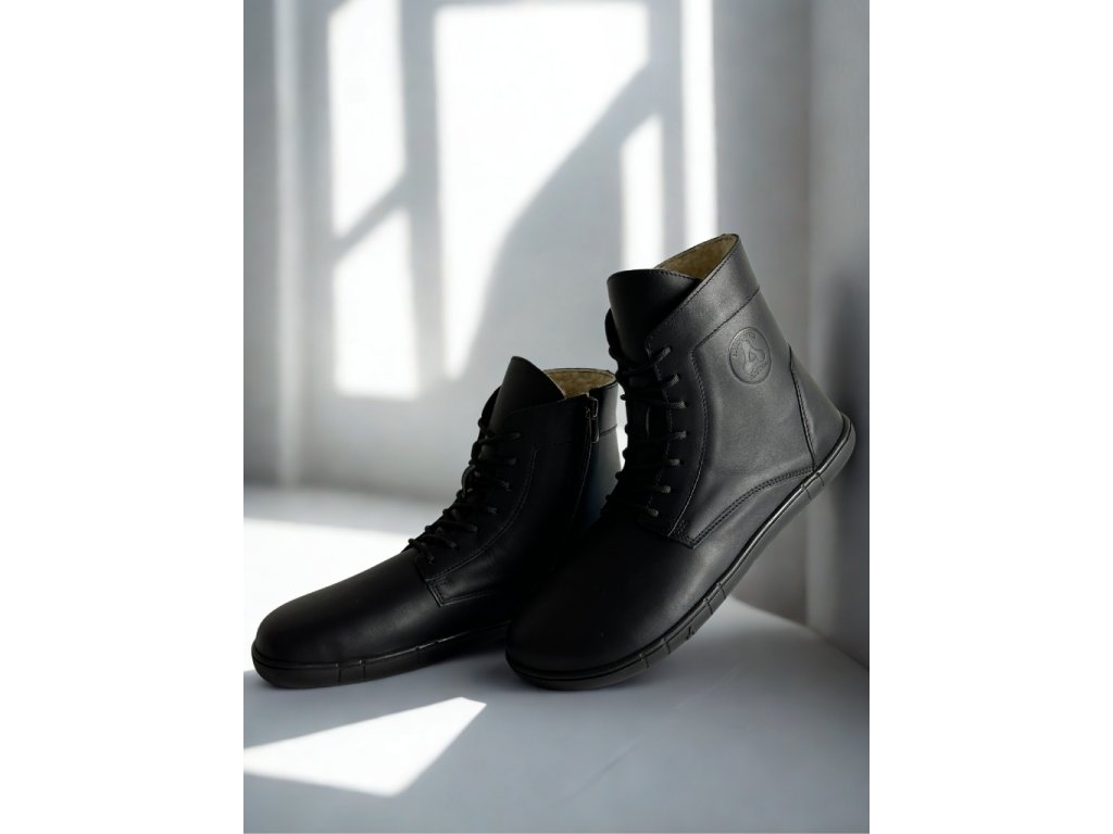 Zimní kožené boty Antal VENERO BLACK WINTER, to je hřejivá noblesa v barefoot světě v matné černé barvě.