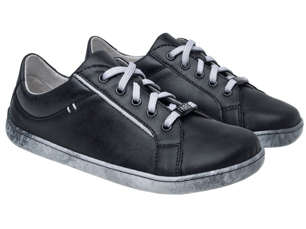 Kožené celoroční barefoot tenisky v černošedé barvě se žíhanou podrážkou.