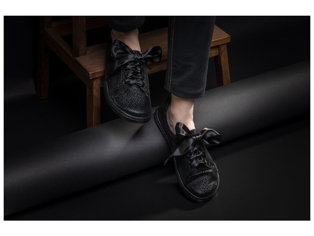 Kožené pohodlné barefoot tenisky v luxusním vzhledu, jemným třpytem a černé klasice, ve kterých zazáříš na jakékoliv párty nebo jen při procházce městem.