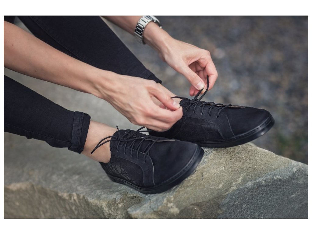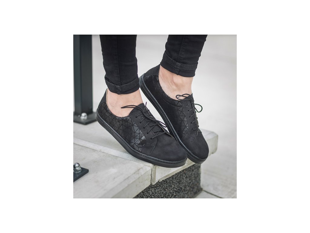 Kožené pohodlné barefoot tenisky v černé klasice doplněné zajímavým vzorem