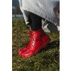 Kožené kotníkové pohodlné barefoot boty s ozdobným a zároveň praktickým zipem ve výrazné červené barvě