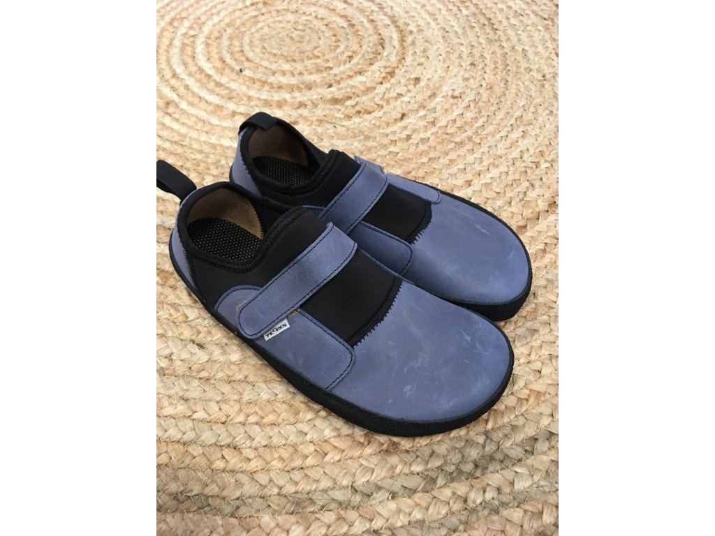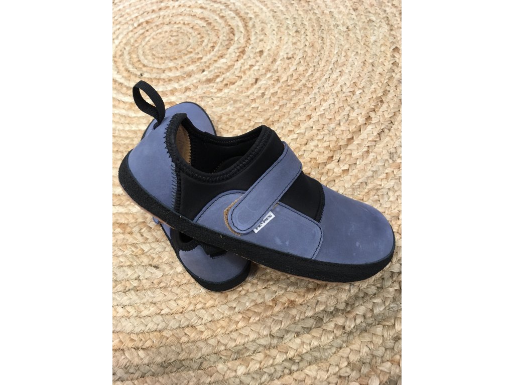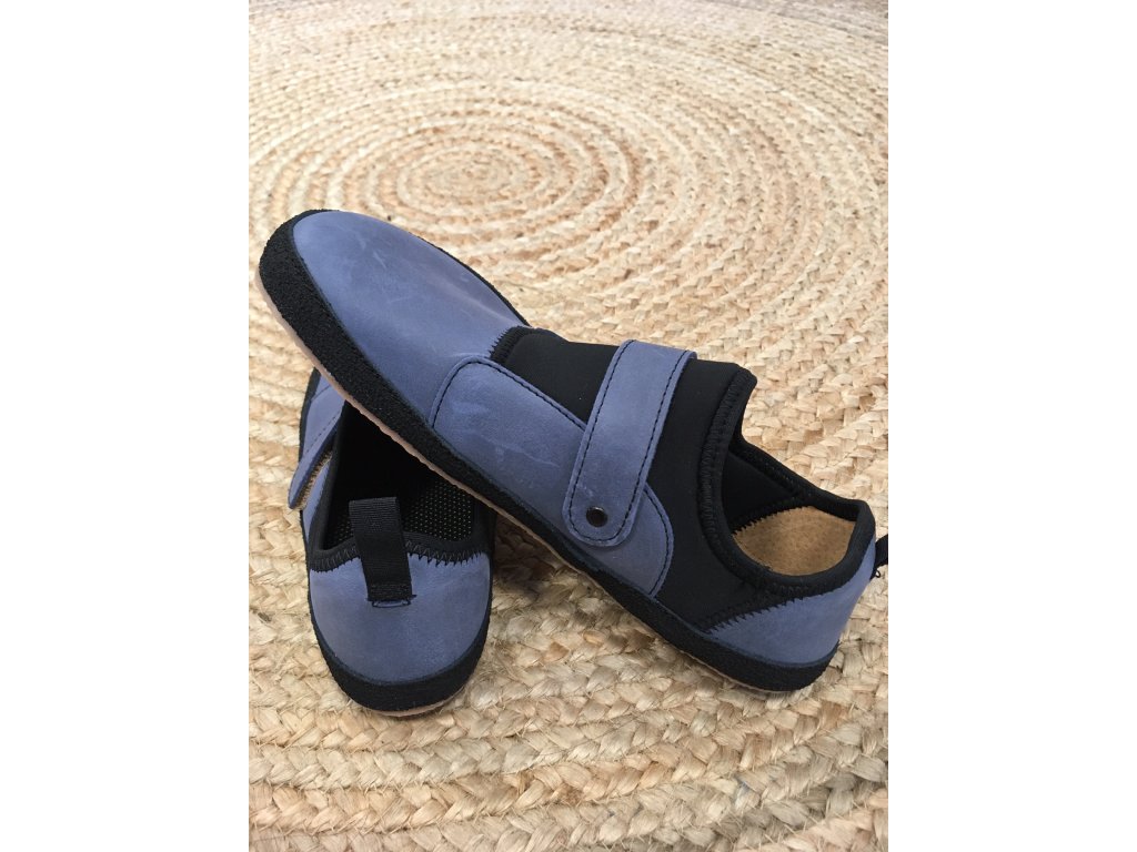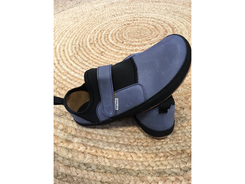 Ručně šité celoroční barefoot kožené lycrové tenisky na suchý zip