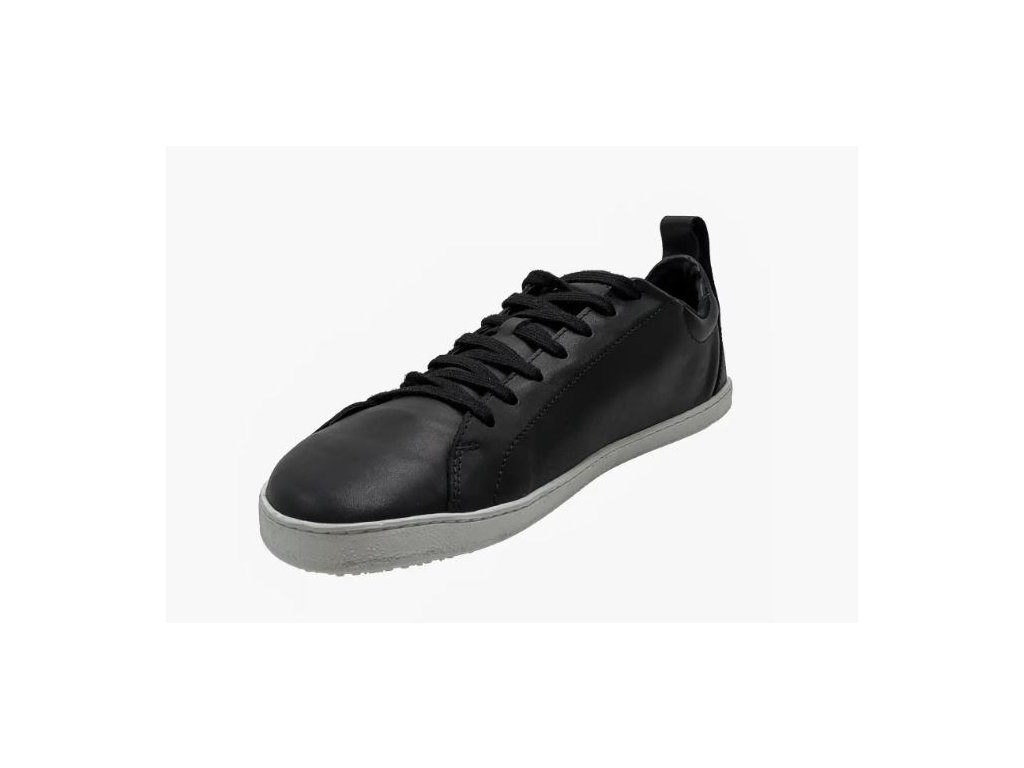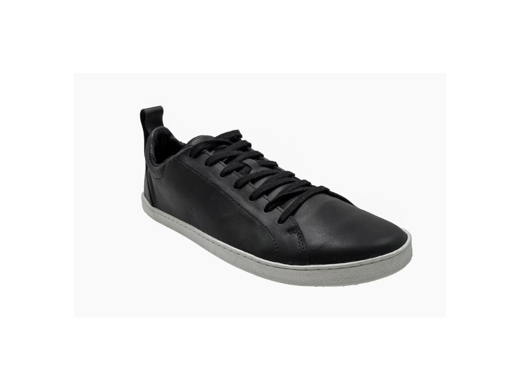 Ručně šité celoroční barefoot kožené tenisky z jemné černé kůže na bílé miskové podešvi