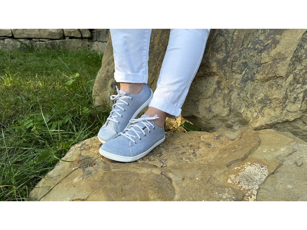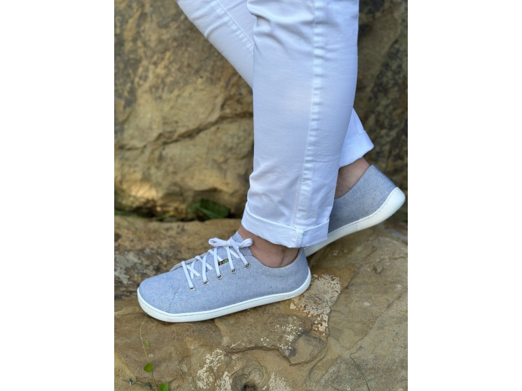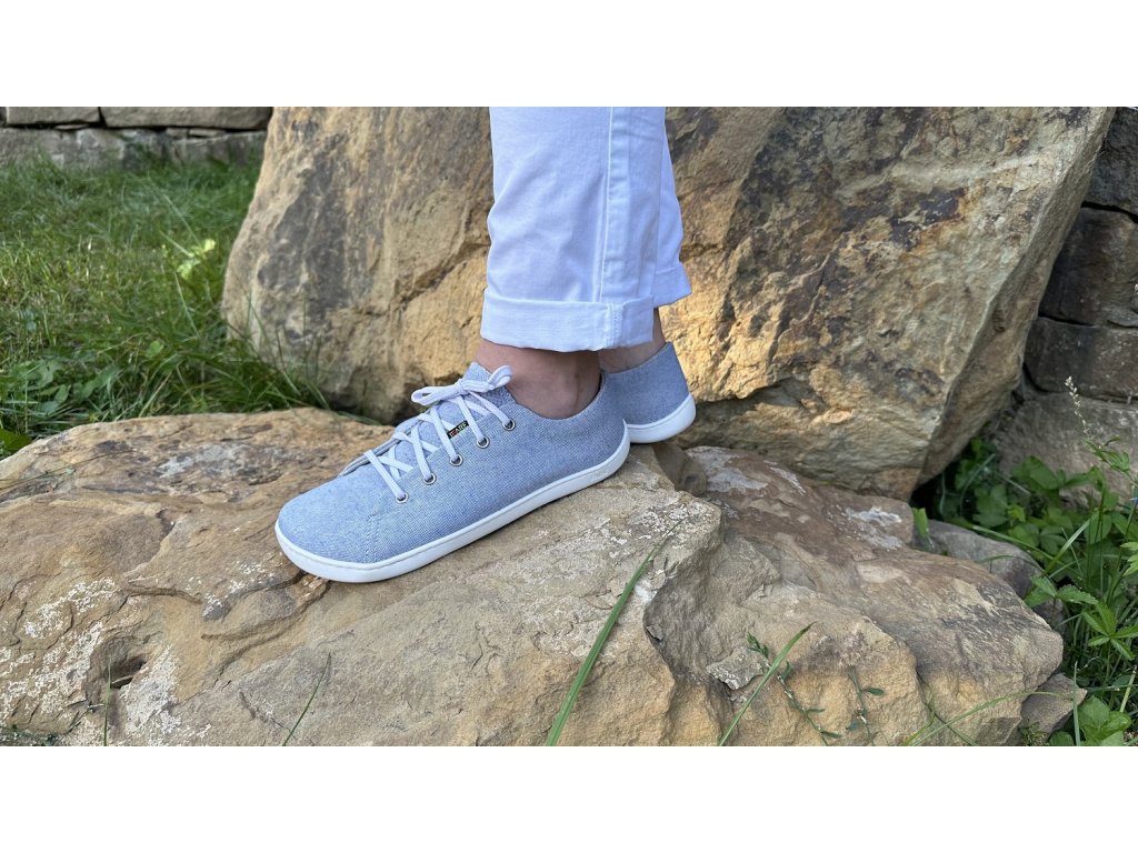 Barefoot letní unisex plátěnky. Světlé modré tenisky pro letní dobrodružství.