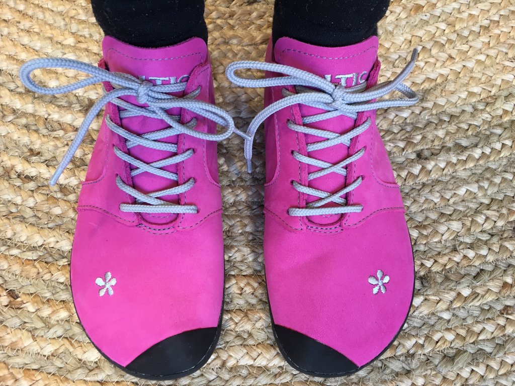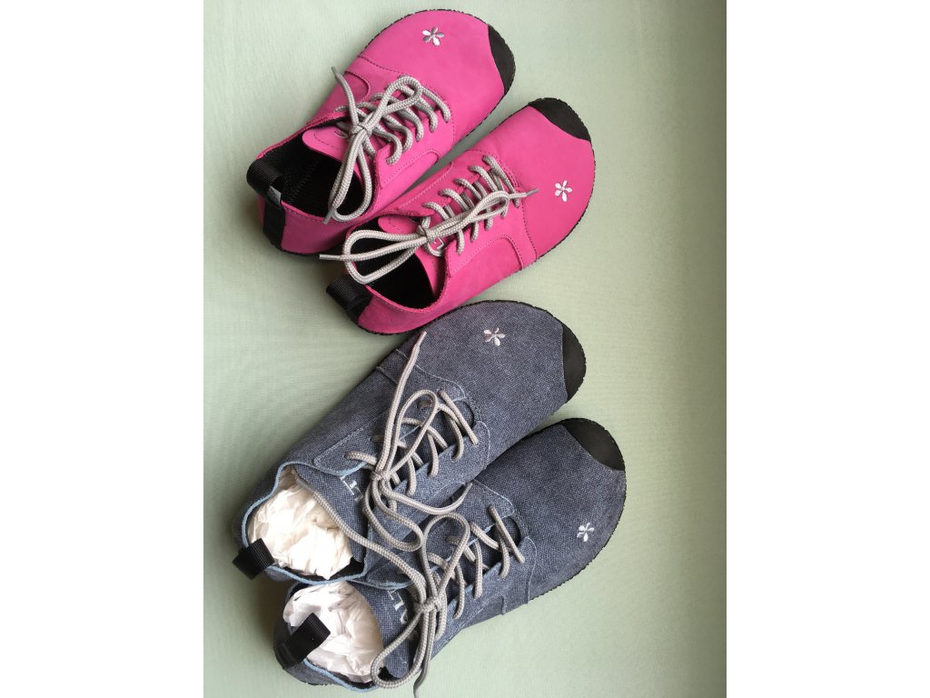 Měkké, lehké, pohodlné barefoot boty Saltic Fura v dámském provedení s kytičkou.