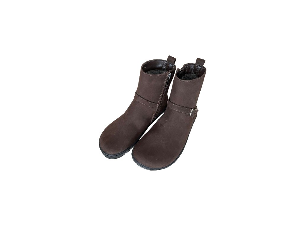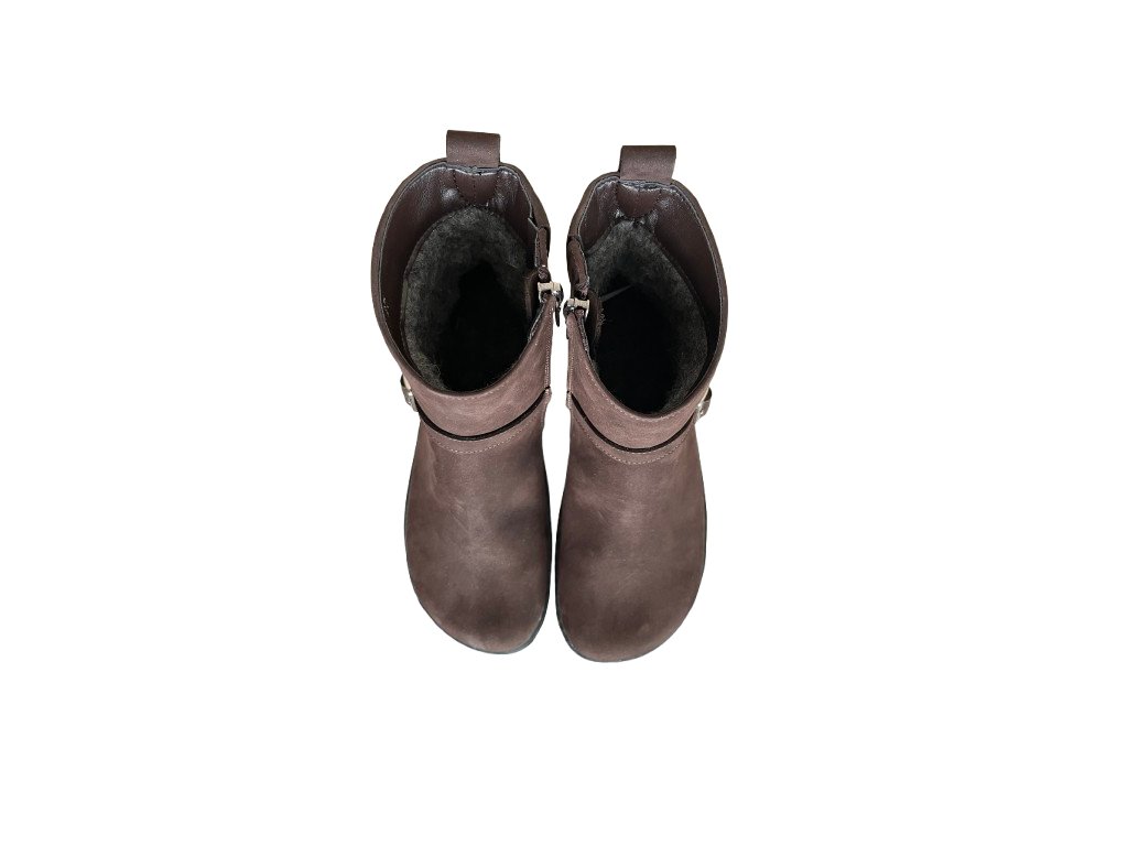 Nízké kožené barefoot kozačky TENE v tmavě hnědé barvě pro zimní eleganci