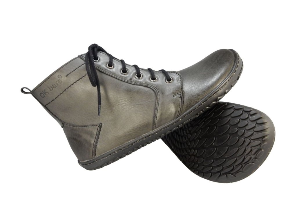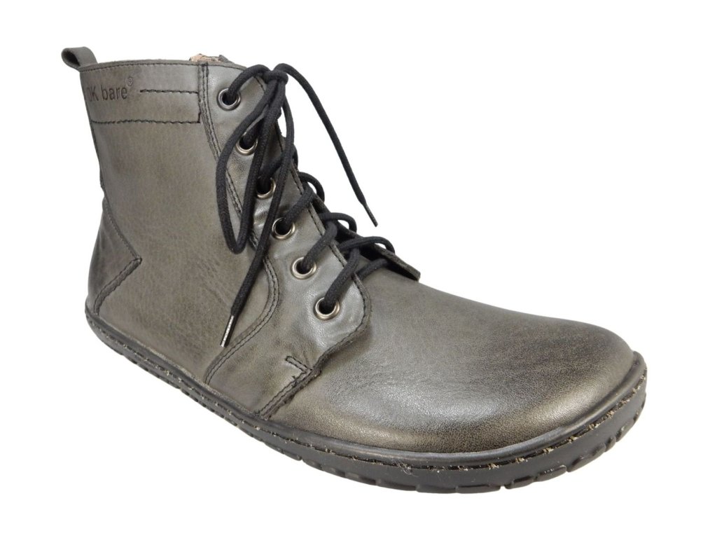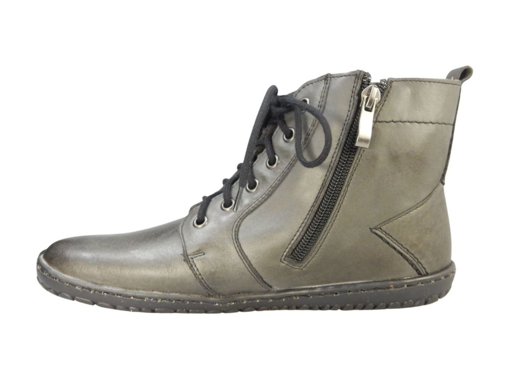 Zimní barefoot kotníčkové boty na šněrování i zip pro dokonale jednoduché obutí v jemné šedé barvě